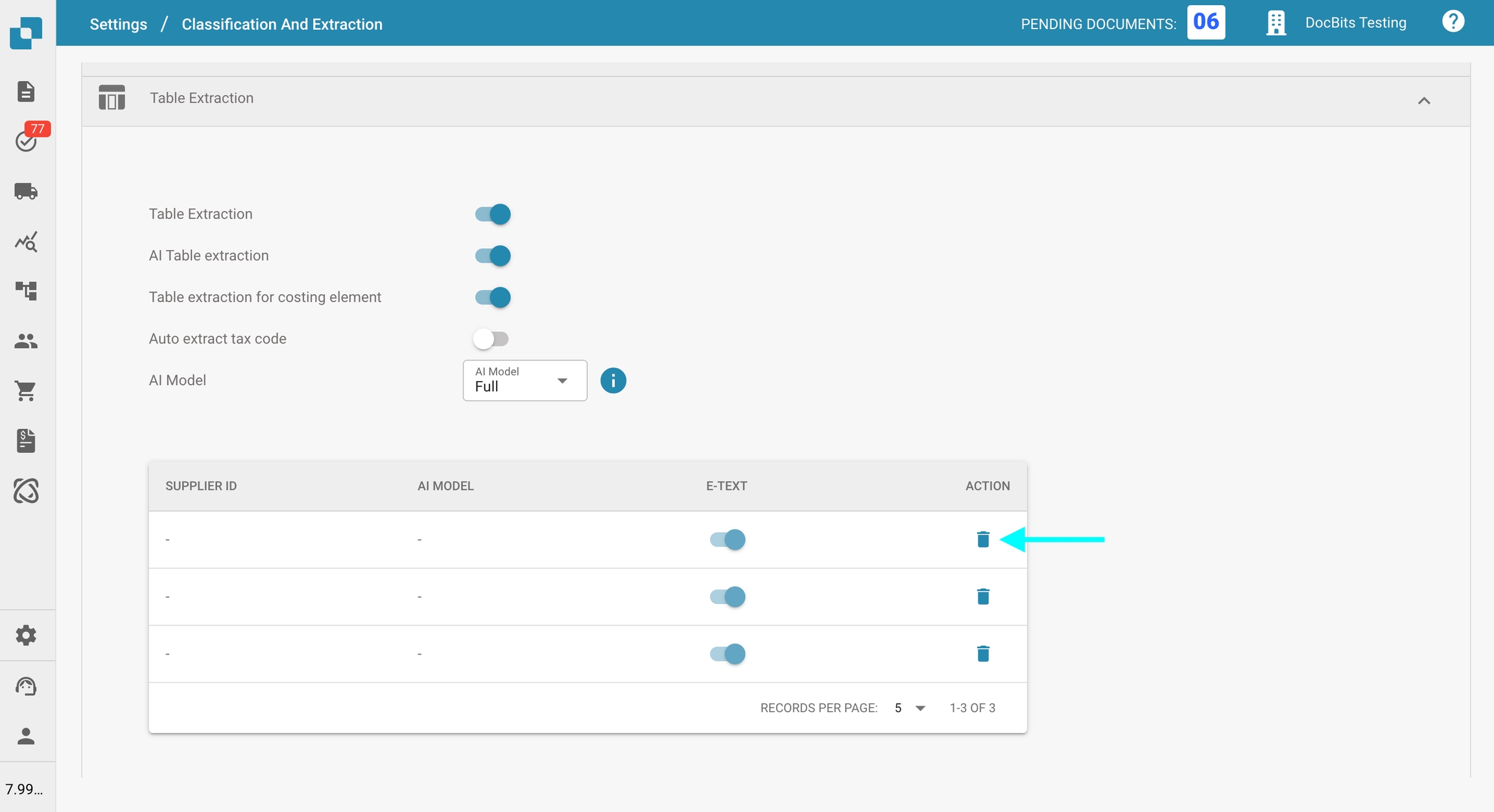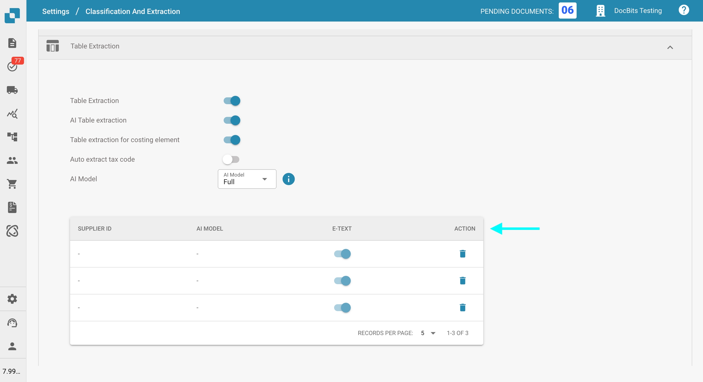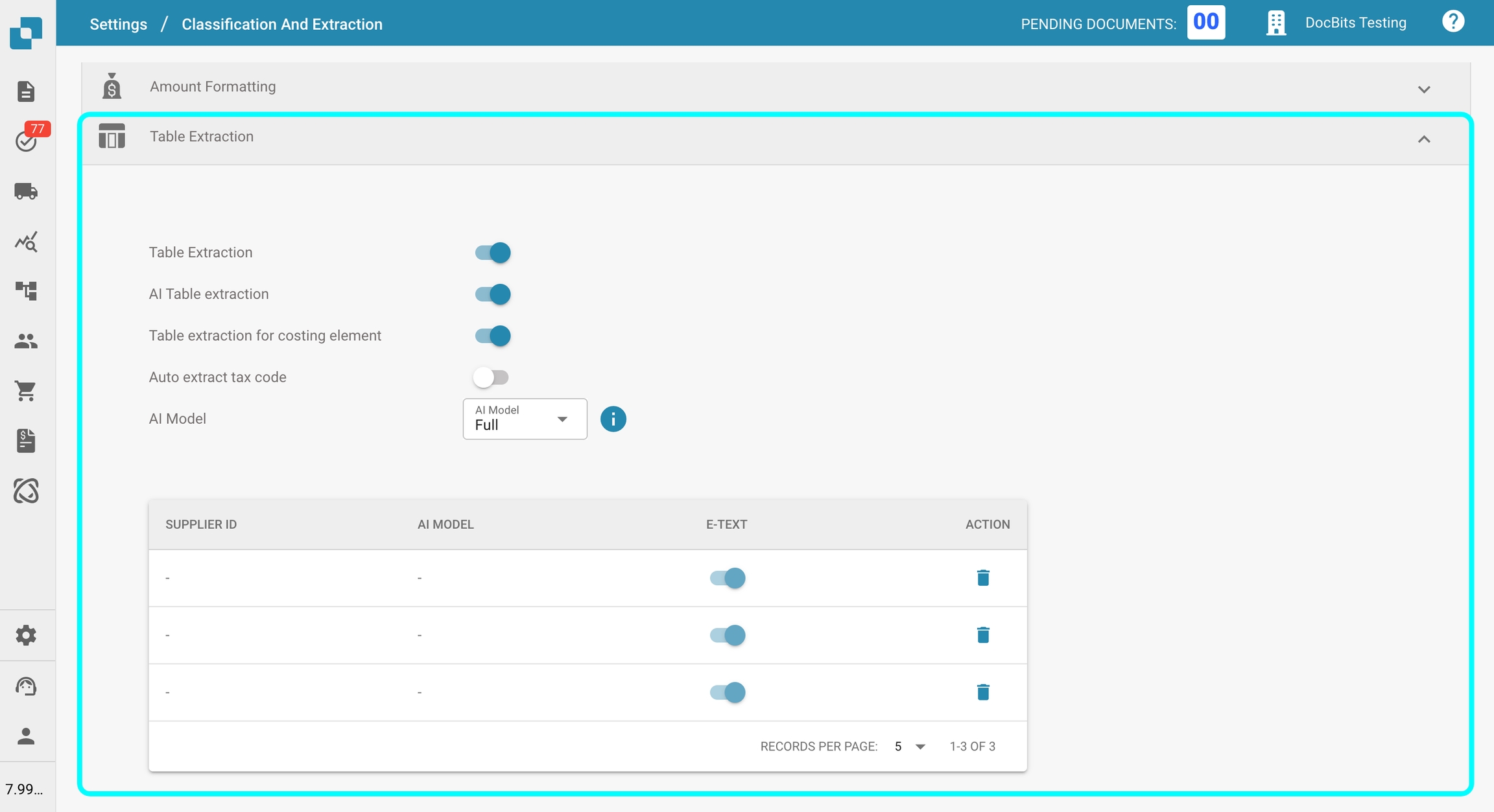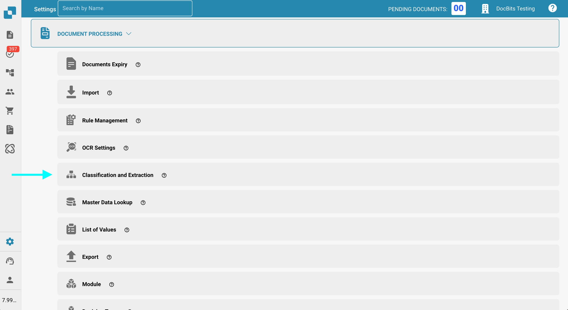 Przejdź do Ustawienia → Przetwarzanie dokumentów → Klasyfikacja i ekstrakcja