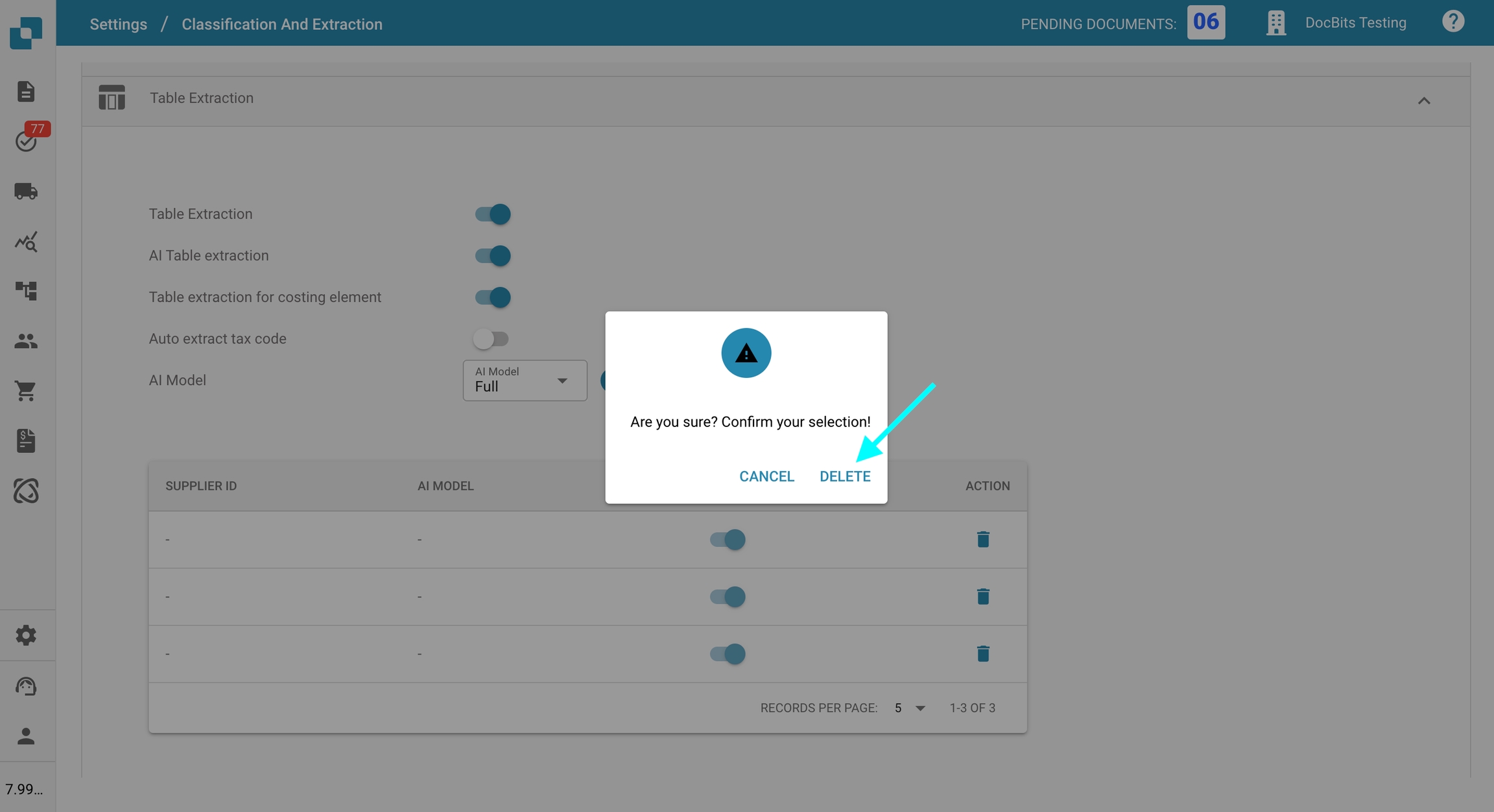 Po usunięciu dostawca wróci do korzystania z domyślnego modelu AI do ekstrakcji pól i ekstrakcji tabeli.
