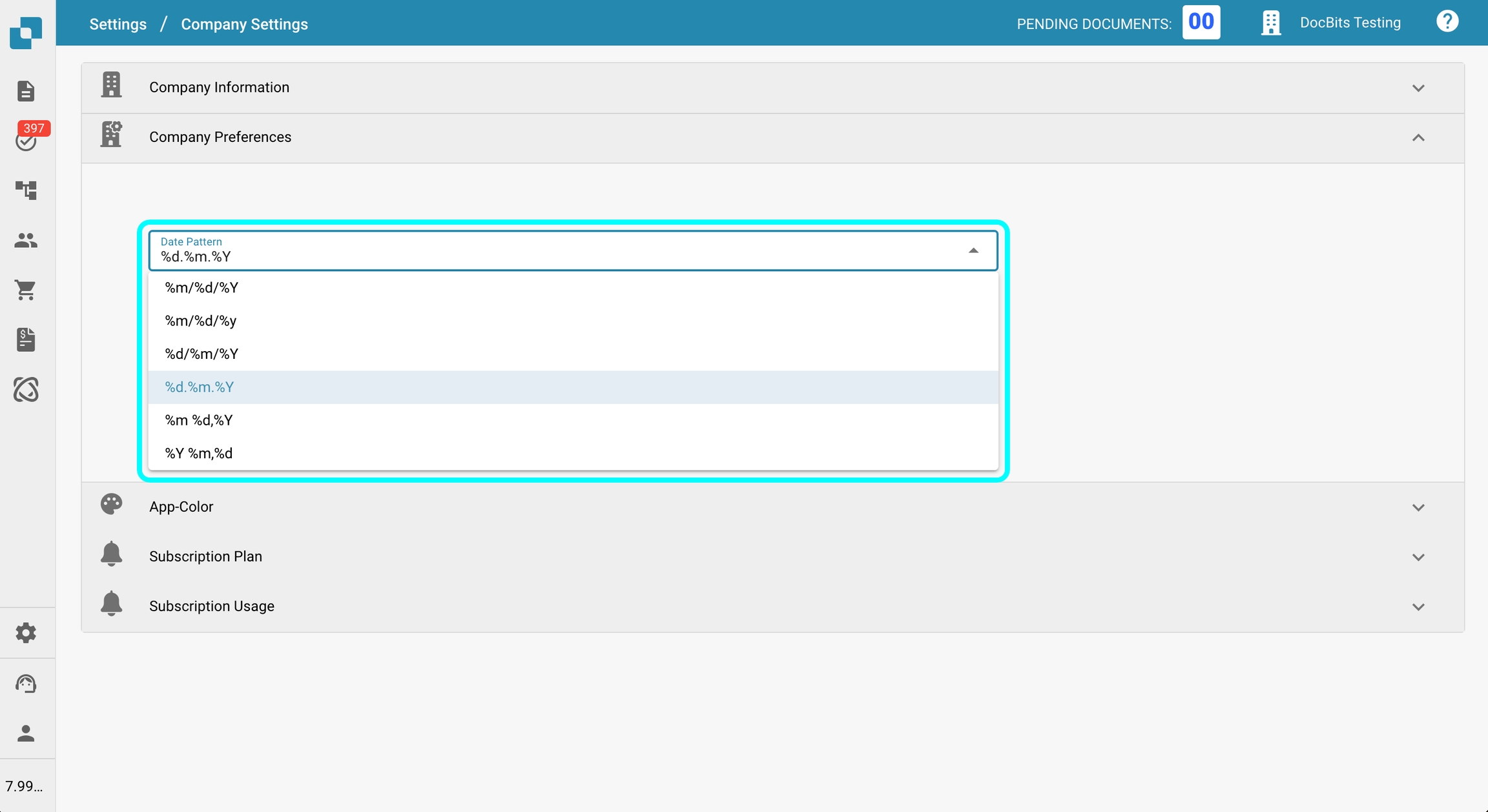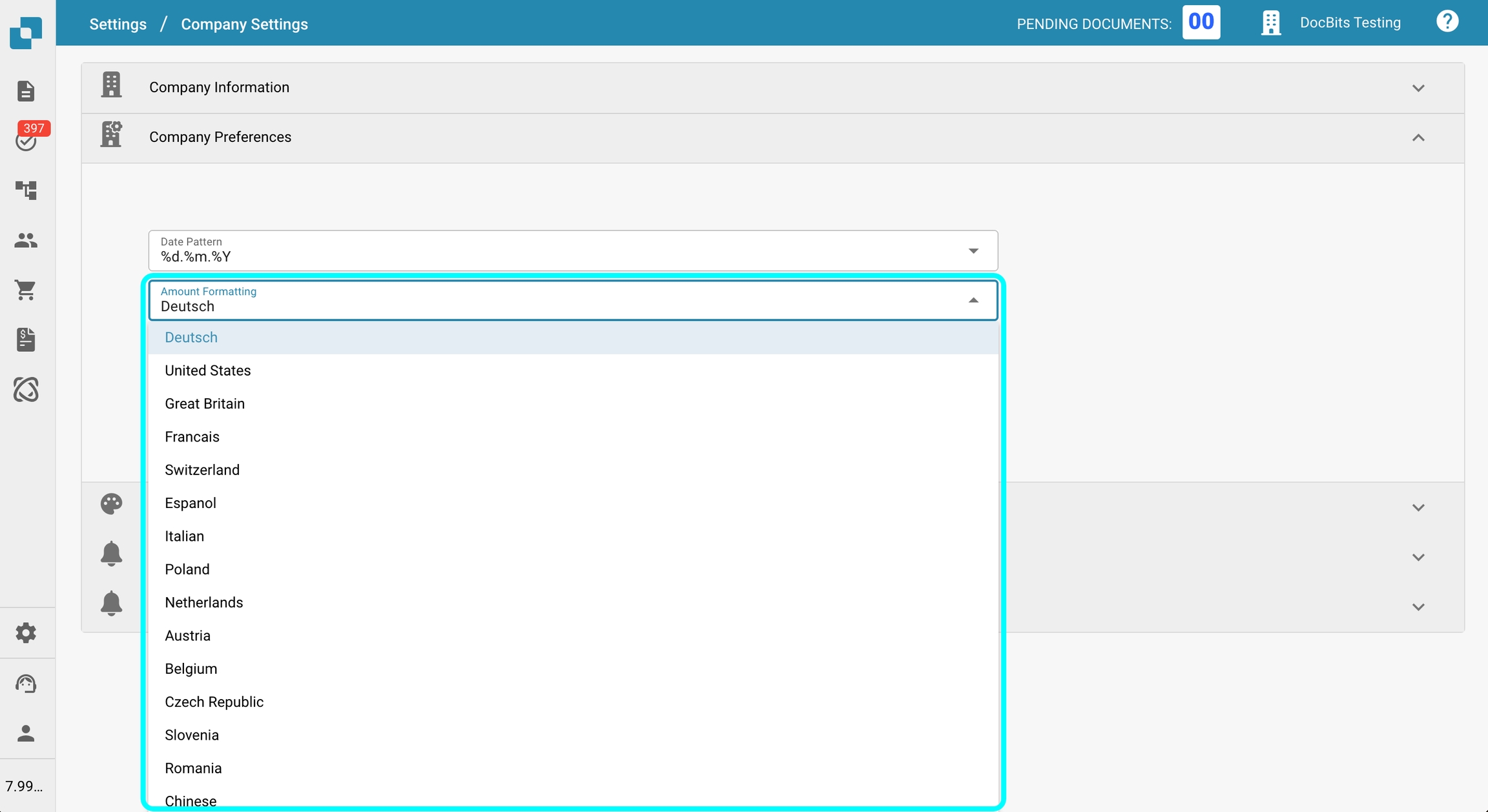 W tym ustawieniu możesz wybrać format daty, który będzie używany w całym DocBits. Dostępnych jest kilka opcji formatowania, które pozwalają dostosować sposób wyświetlania dat.