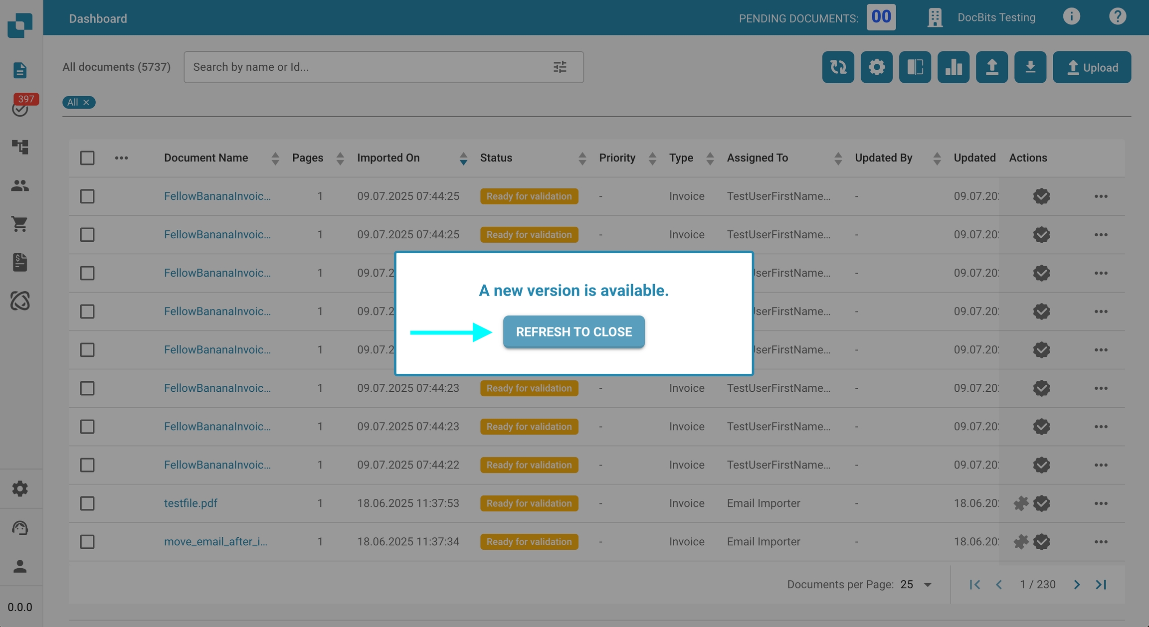 Kliknij Odśwież, aby zamknąć w oknie dialogowym. DocBits zostanie przeładowane i otworzy się z najnowszą wersją. Zapewnia to, że użytkownicy zawsze pracują z najnowszymi funkcjami, ulepszeniami i poprawkami błędów.