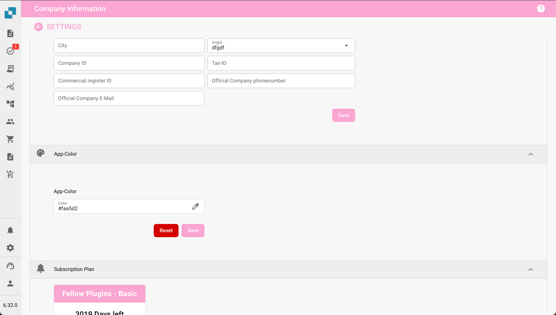 W sekcji Aplikacja-Kolor administratorzy zobaczą również informacje związane z Planem subskrypcji. Obejmuje to aktualny plan, jego status oraz pozostałe dni subskrypcji.