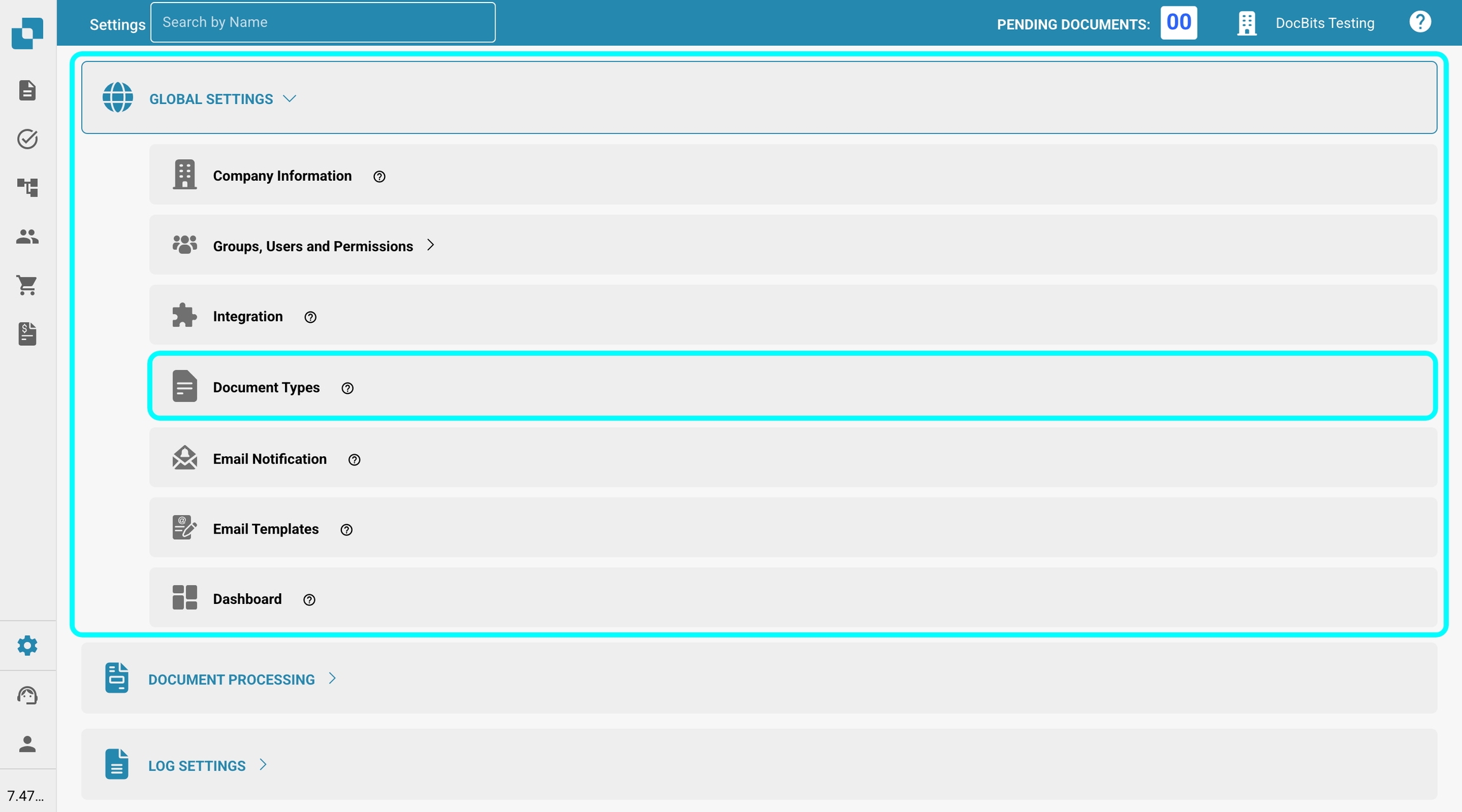 Przejdź do Ustawienia → Ustawienia globalne → Typy dokumentów.