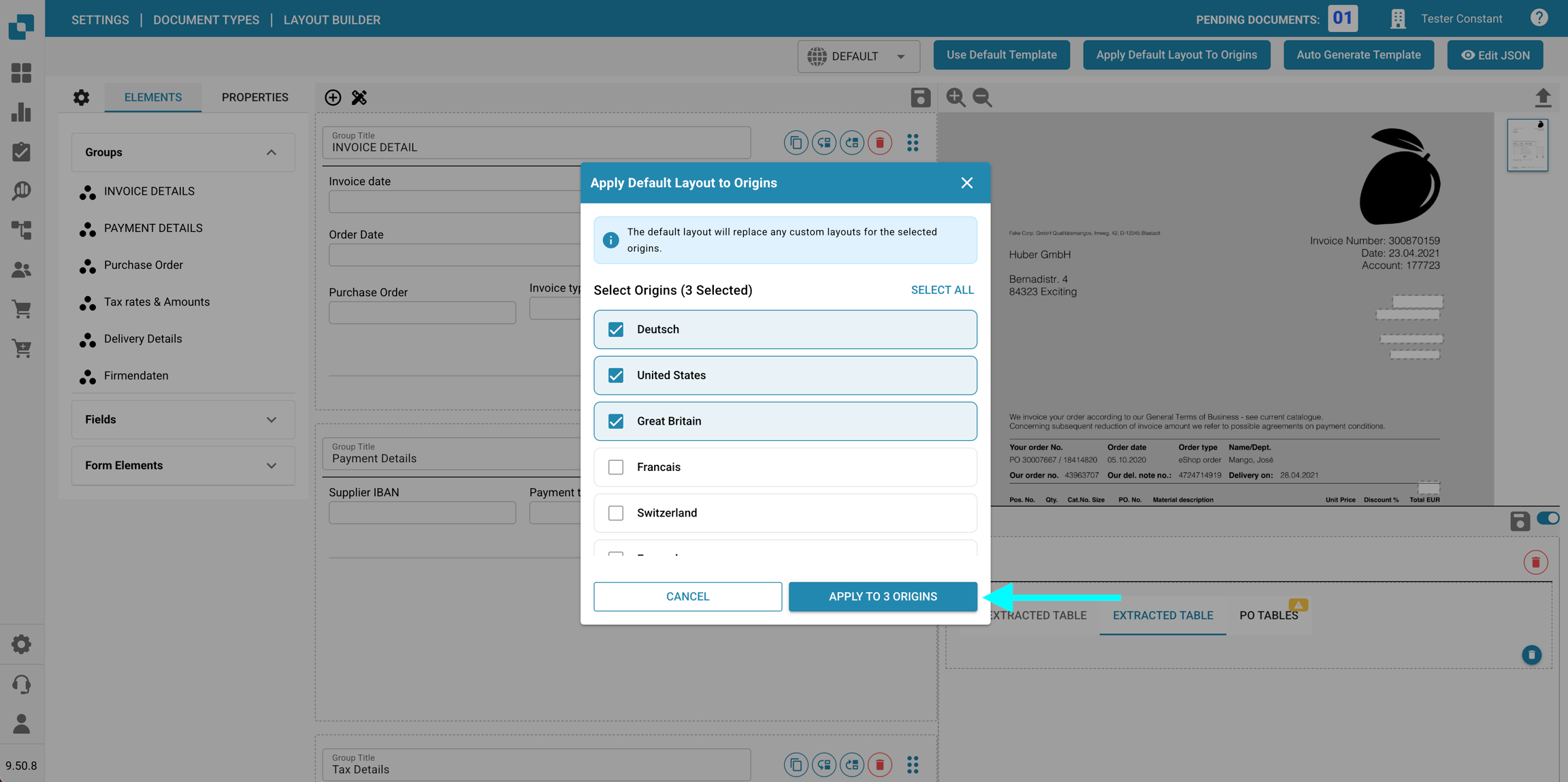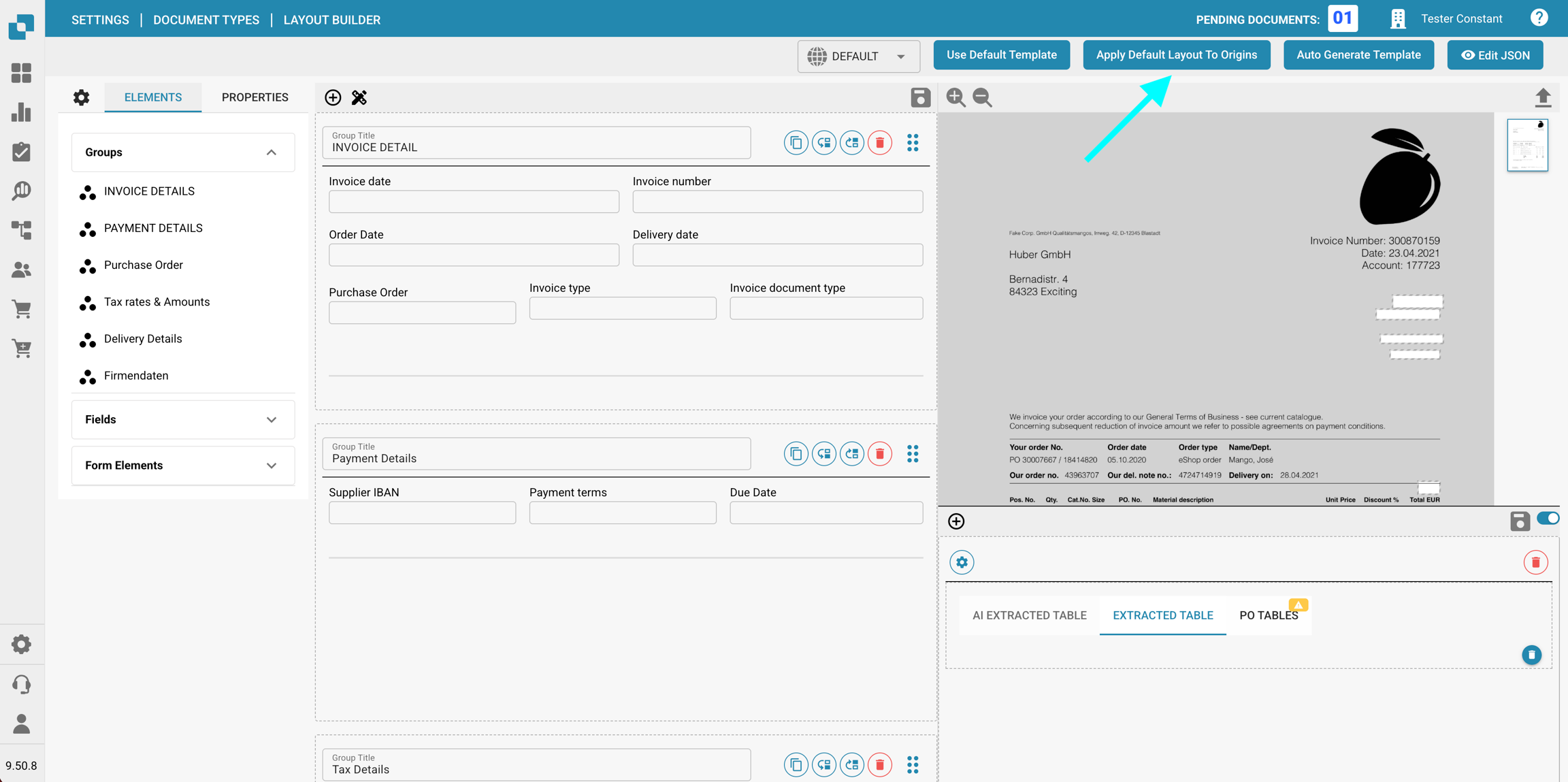 Wybierz Origin Layout: W Layout Builder wybierz podstawowy układ odpowiadający pochodzeniu dokumentu.