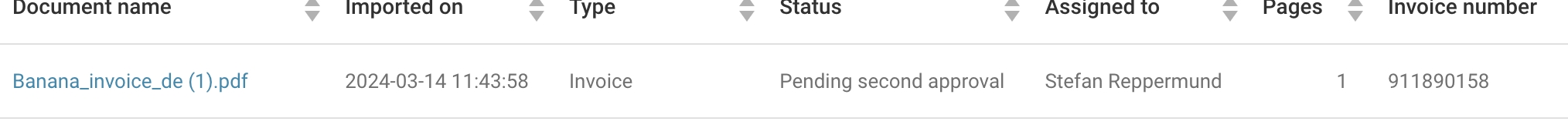 Oczekujące na zatwierdzenie AP: Dostawca otrzymał pierwsze zatwierdzenie i czeka na drugie (zatwierdzenie działu księgowości).