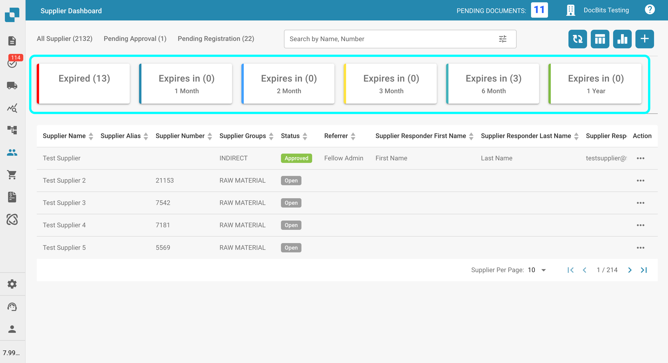 Kliknięcie tego przycisku otworzy nową sekcję pokazującą, ilu dostawców ma wygasnąć i kiedy. Kliknij dowolną kategorię, aby zastosować filtr i wyświetlić tylko tych dostawców.