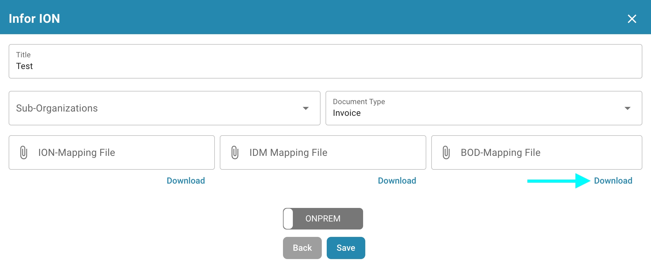 file, a następnie kliknij Select Files w kolumnie Value i prześlij swój plik BOD XML.