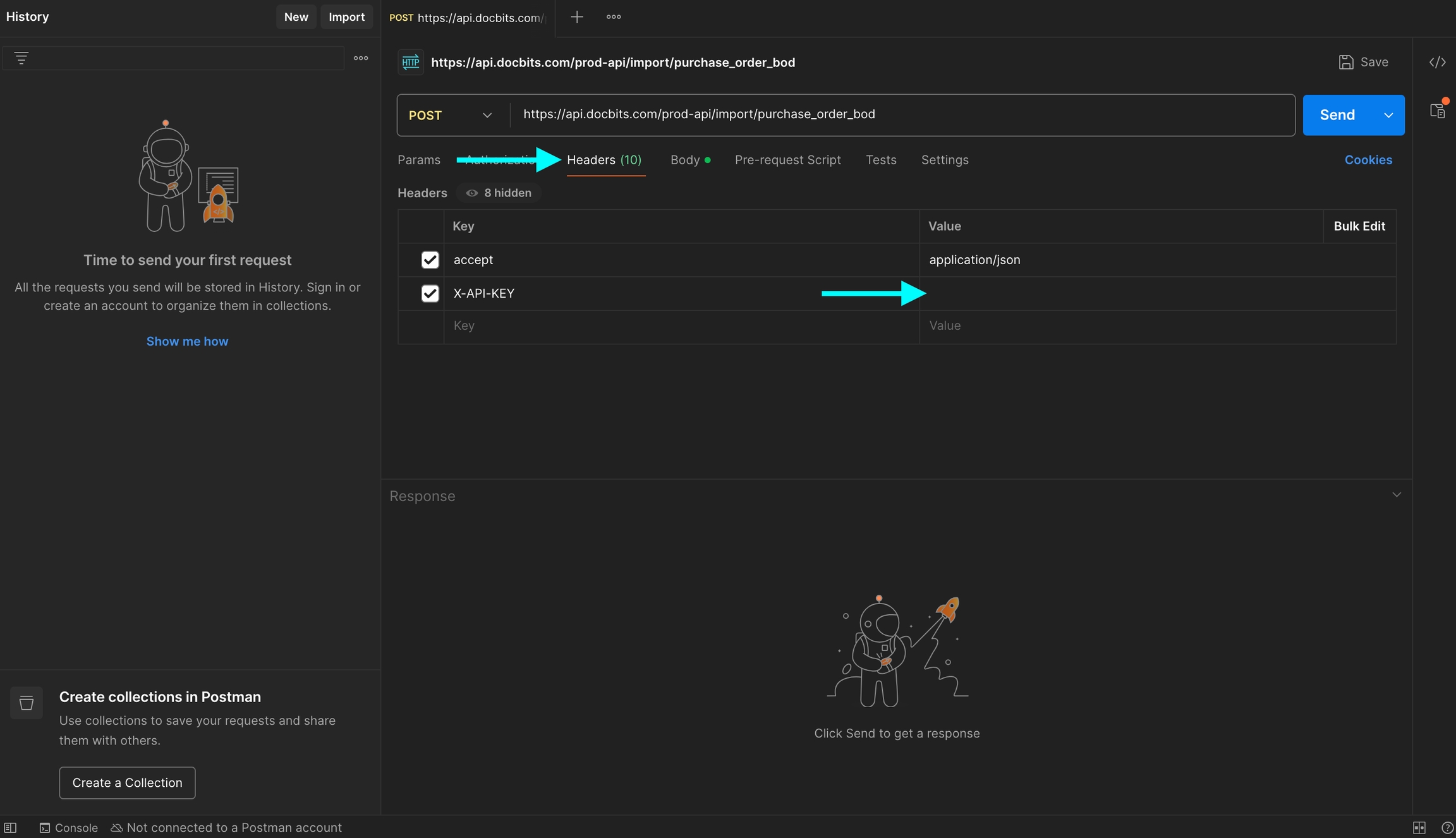 X-API-KEYi wklej swój klucz API do kolumny Value.