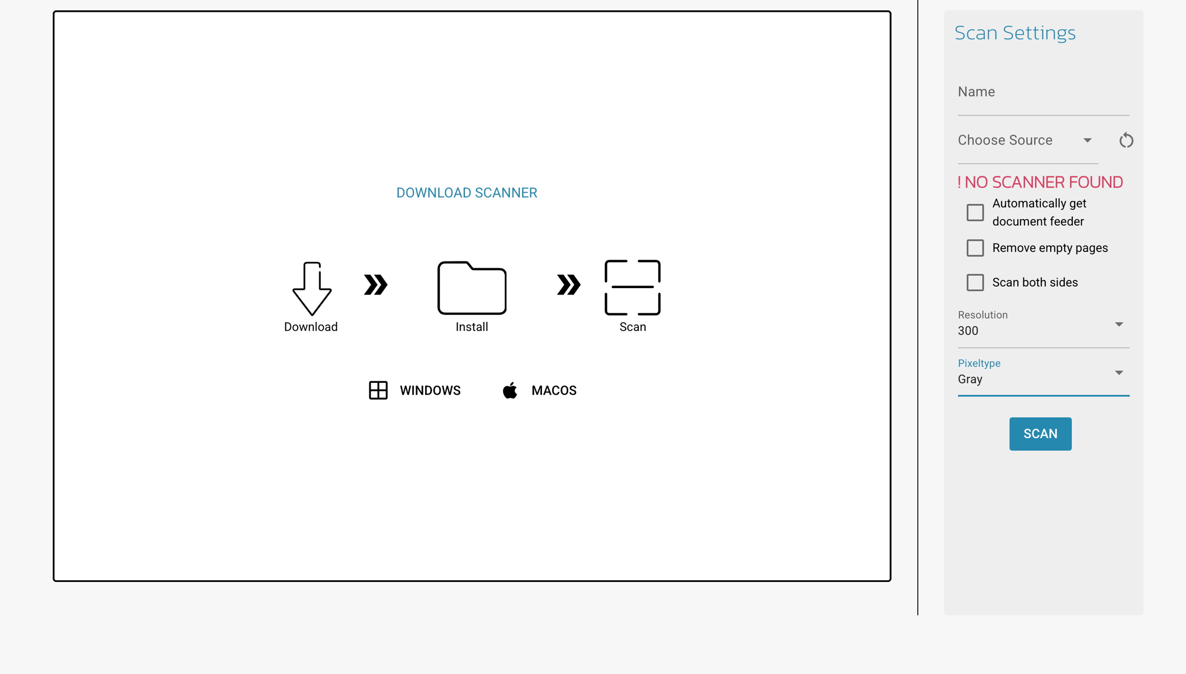 Aby skorzystać z tej funkcji, musisz mieć podłączony do systemu skaner. Jeśli skaner jest dostępny, możesz wybrać go po prawej stronie, nazwać swój dokument i kliknąć Skanuj. Opcjonalnie możesz dostosować ustawienia skanowania po prawej stronie przed rozpoczęciem procesu.