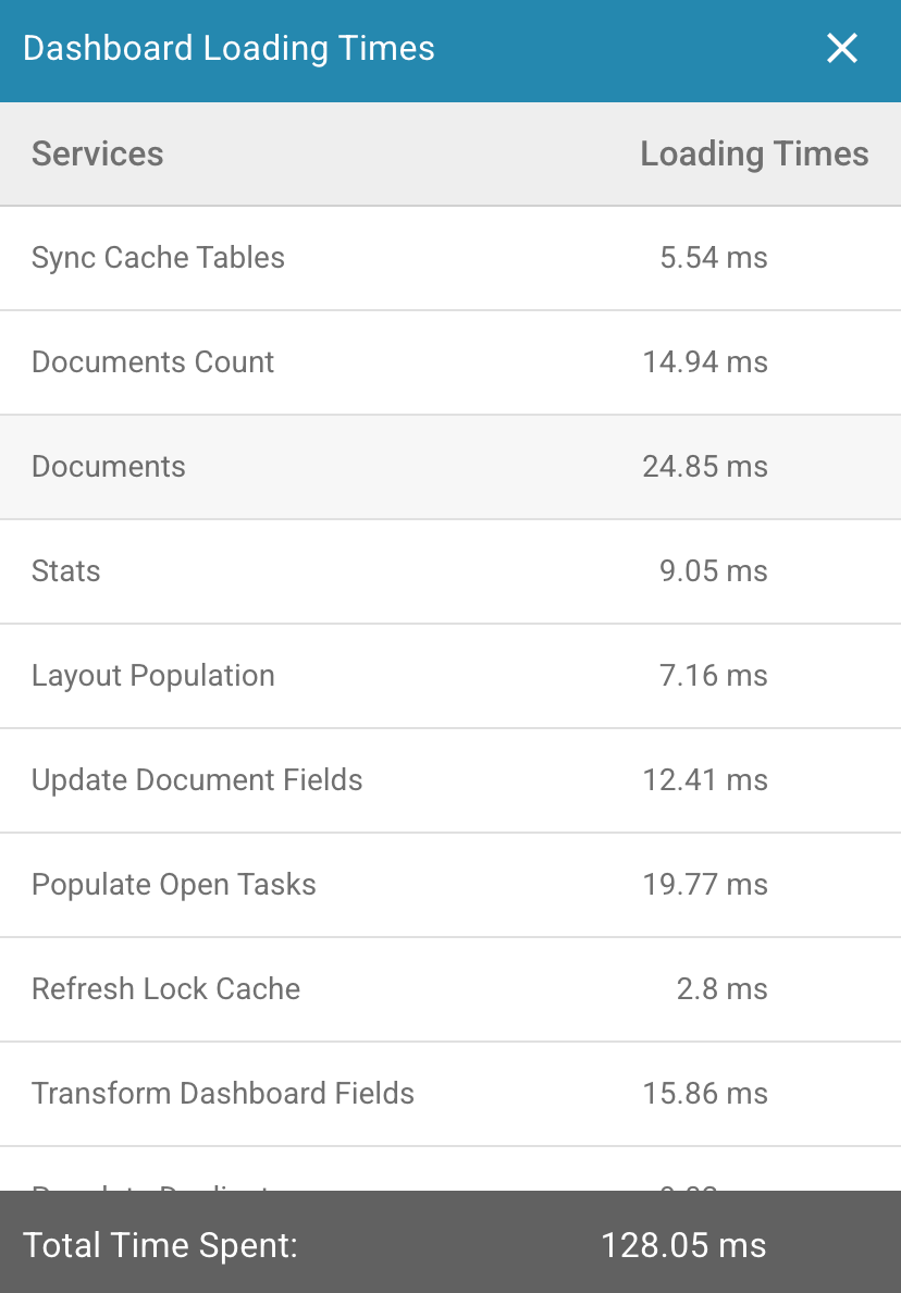 Kliknięcie tego przycisku otworzy okno pop-up wyświetlające czasy ładowania dla każdej usługi, a łączny czas ładowania zostanie pokazany na dole.