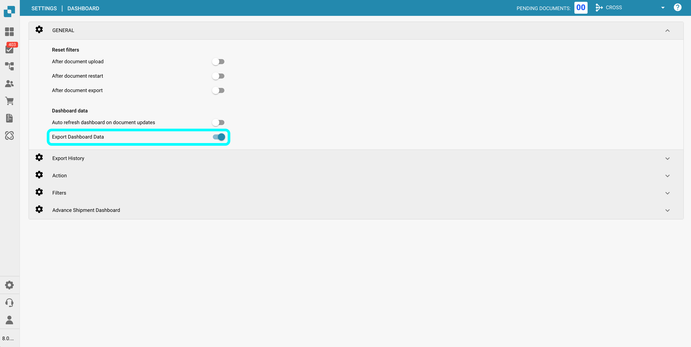 Uwaga: Tę funkcję należy aktywować w Ustawienia -> Ustawienia globalne -> Panel -> Ogólny -> Eksportuj dane pulpitu nawigacyjnego
