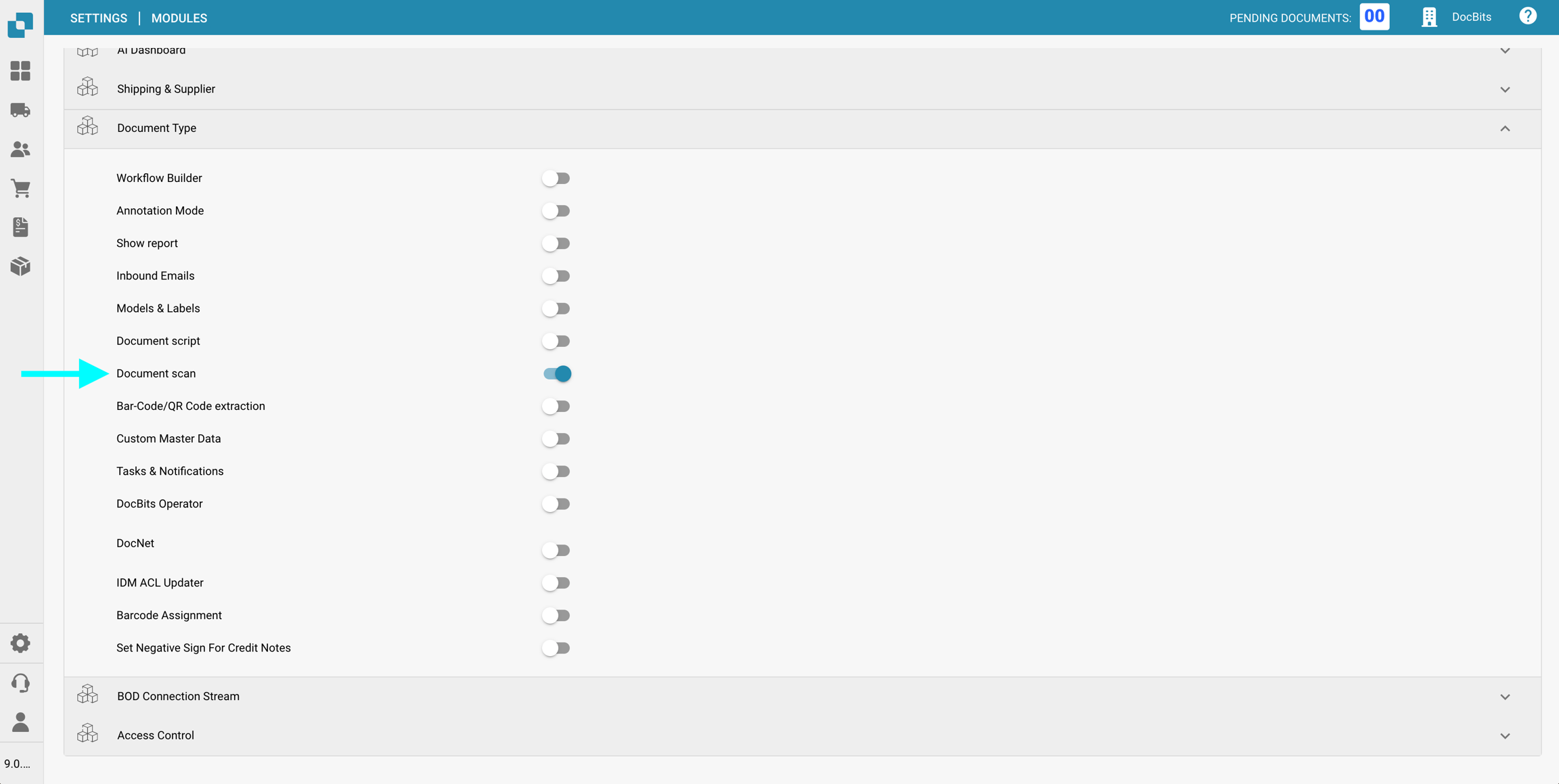 Uwaga: Tę funkcję należy aktywować w Ustawienia -> Przetwarzanie dokumentów -> Moduł -> Typ dokumentu -> Skanowanie dokumentów