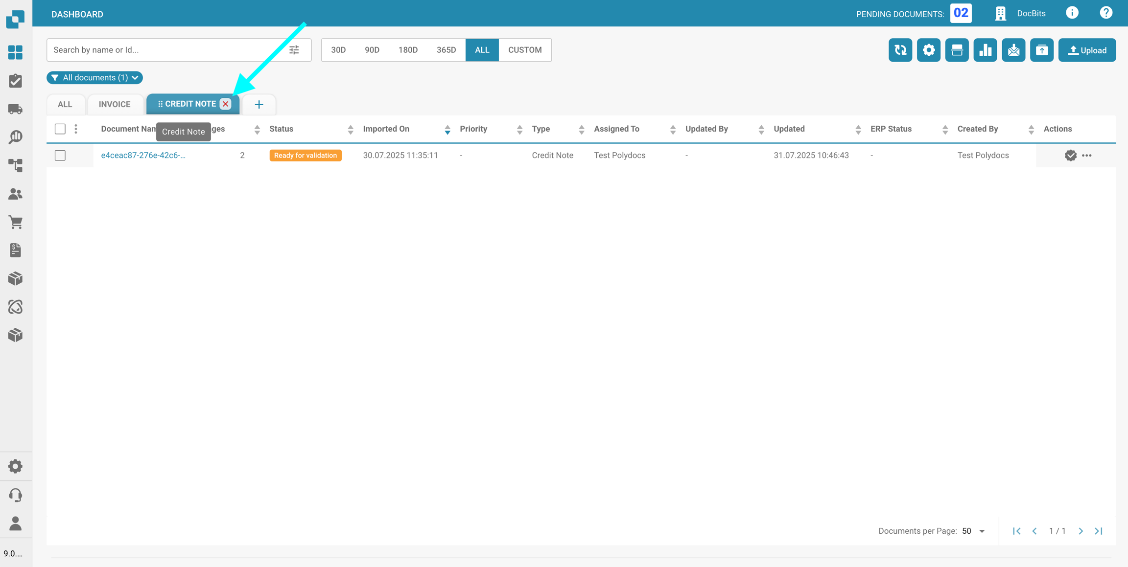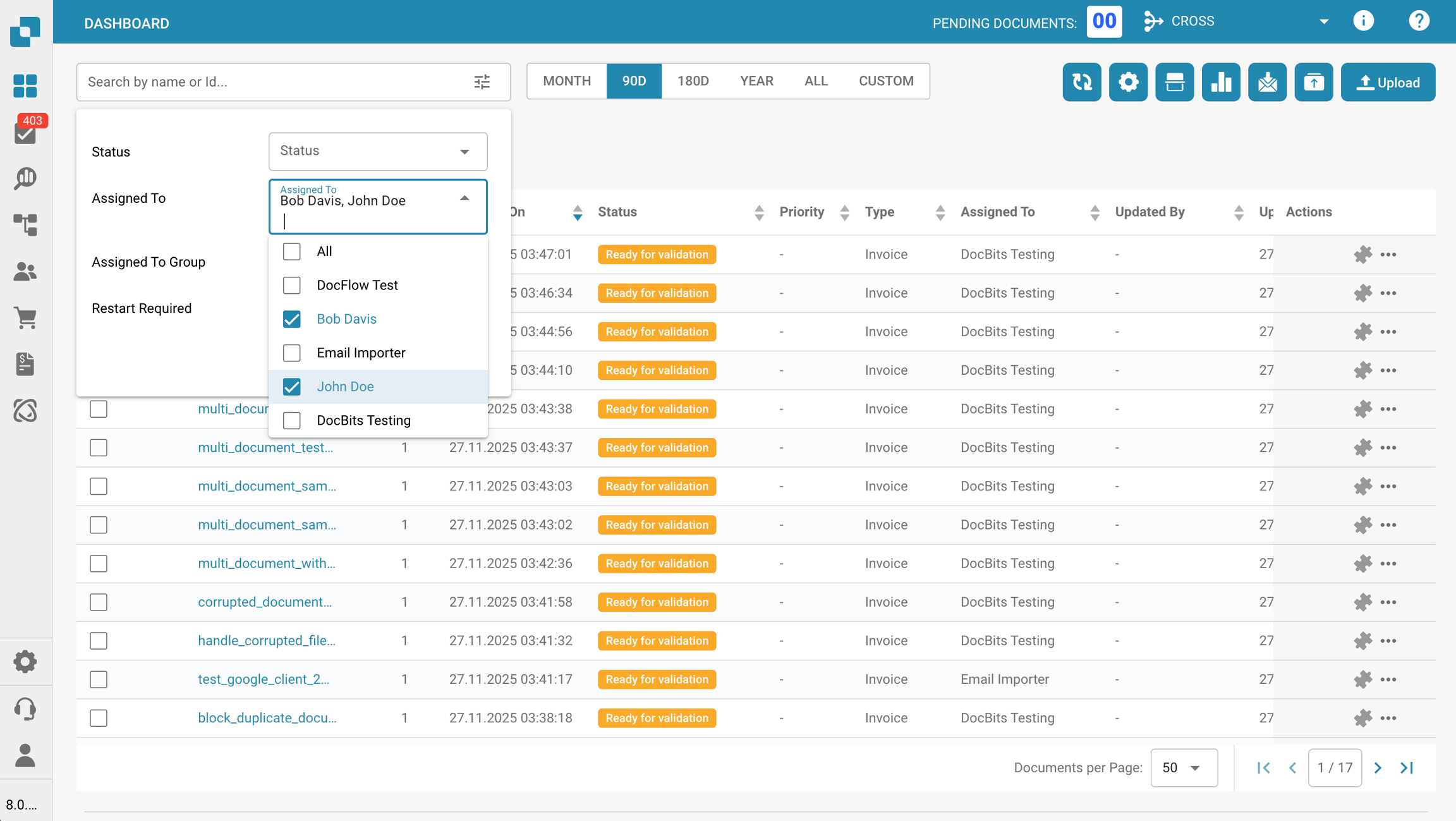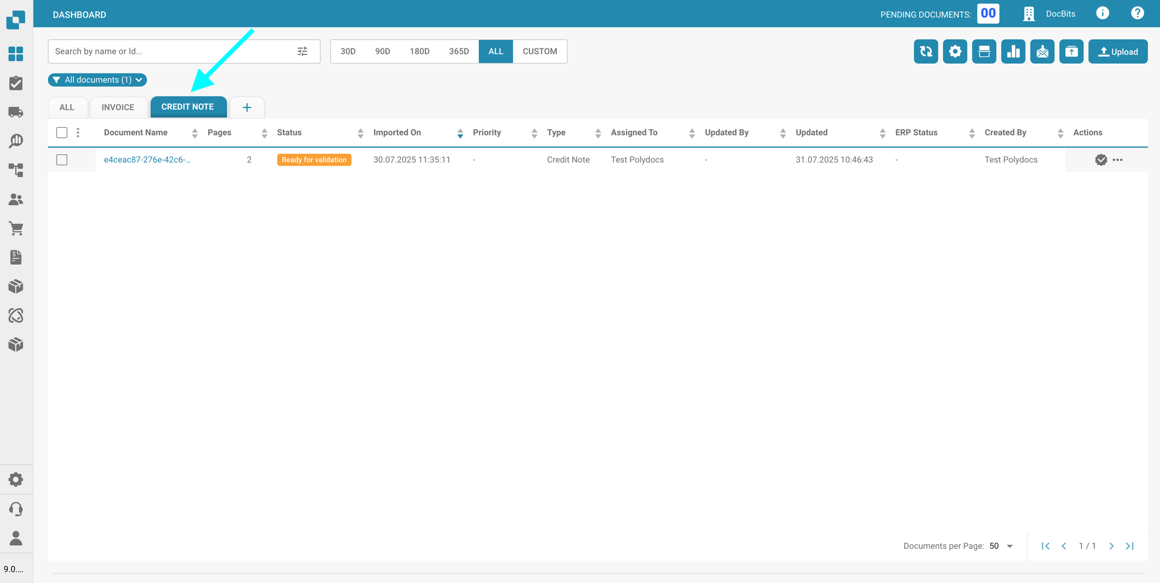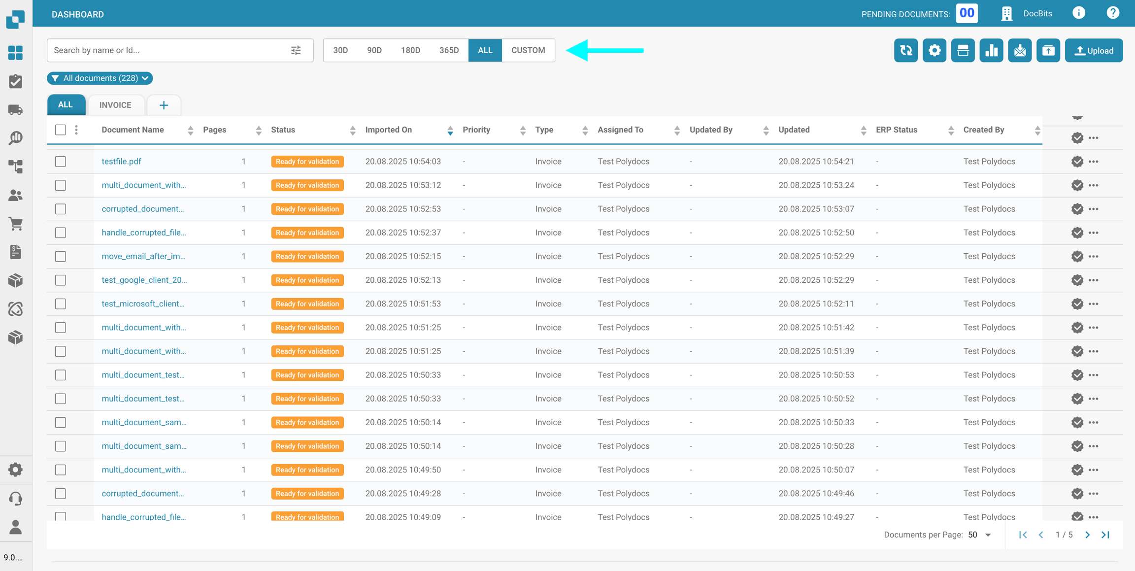 Status: Filtrowanie według statusu przetwarzania (np. Gotowe do walidacji, Odrzucone).