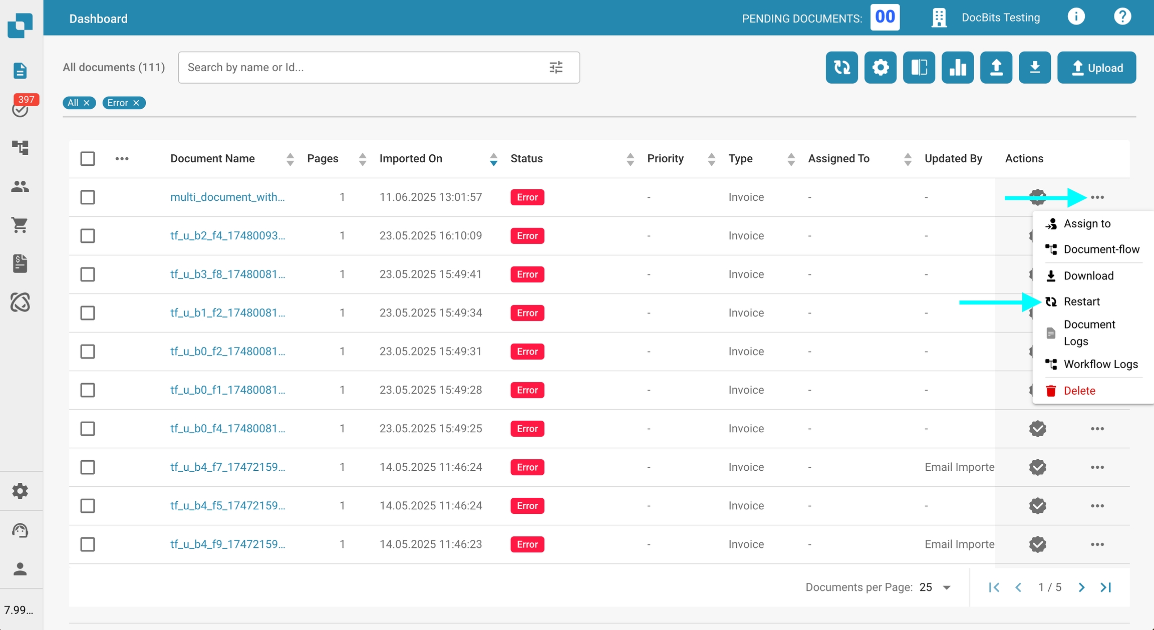 Jeśli dokument przejdzie w stan Błąd, masz kilka opcji, aby kontynuować: